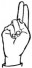 На ћирилици написано ЕВГЕНИЈЕ МИЛАНОВ састоји се из 15 слова [?]. Исписано ћириличном једноручном азбуком за глувонеме: